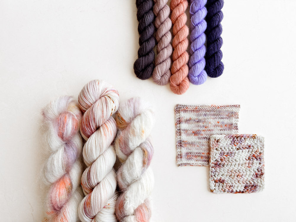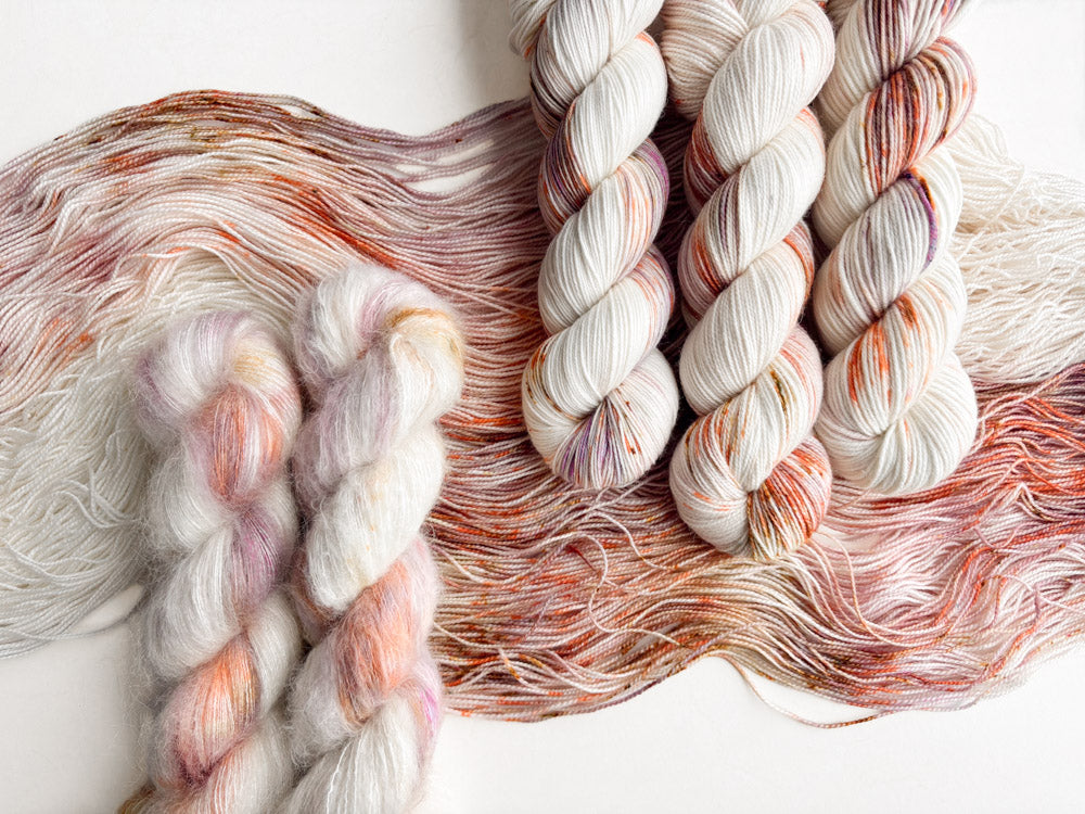 Colorway shown in the following order: Mohair, Suri, Phyllis Sock, Merino Sock, DK.