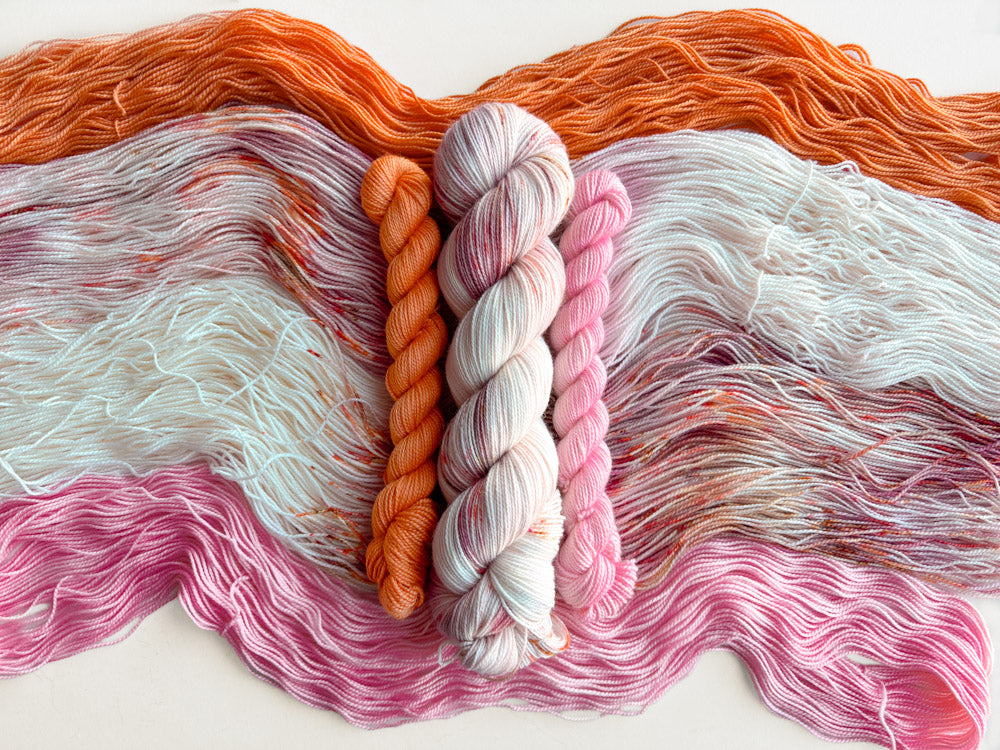 Each sock set comes with (1) 100g full skein + (1) 20g minis