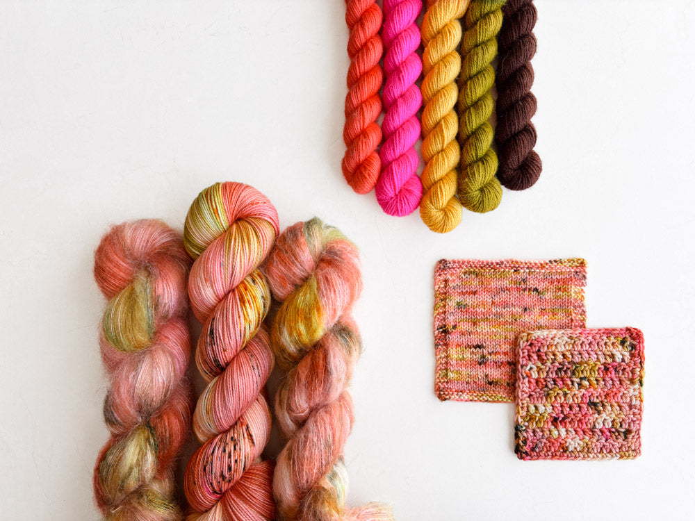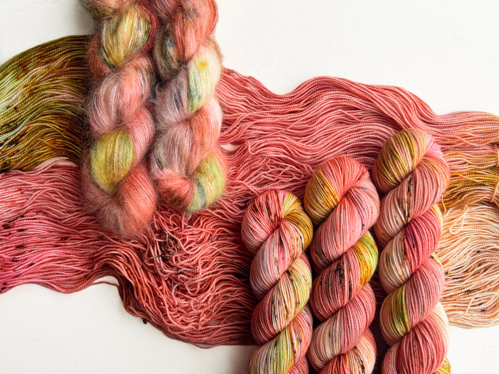 Colorway shown in the following order: Mohair, Suri, Phyllis Sock, Merino Sock, DK.