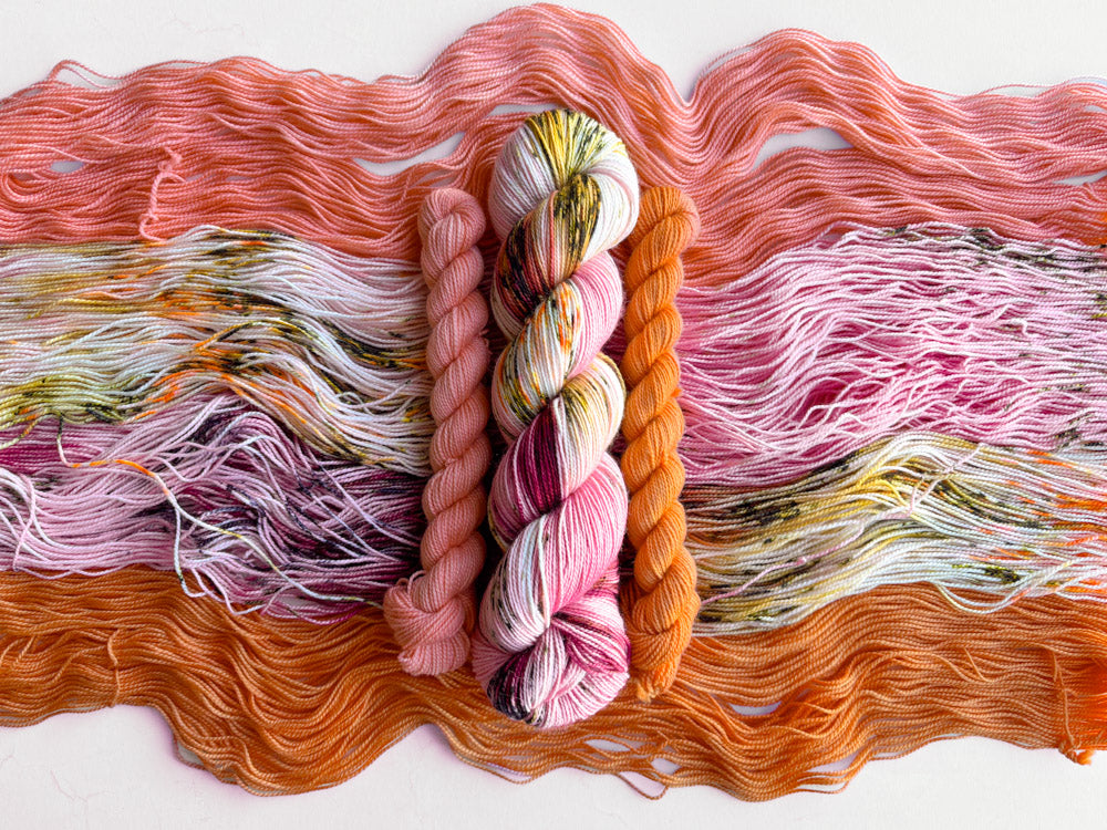 Each sock set comes with (1) 100g full skein + (1) 20g minis