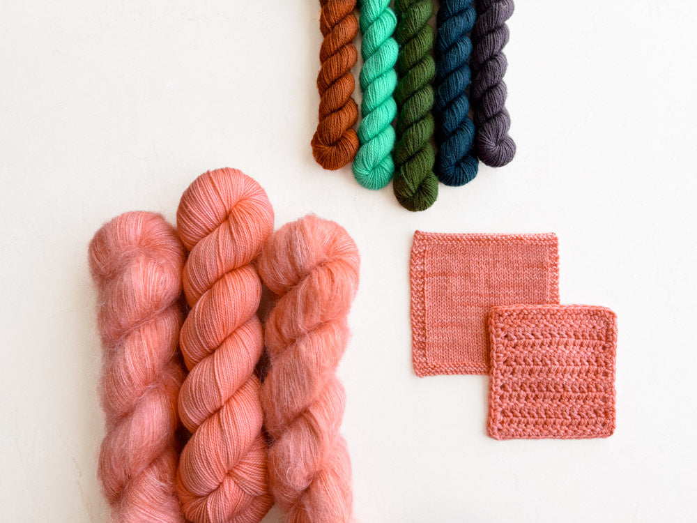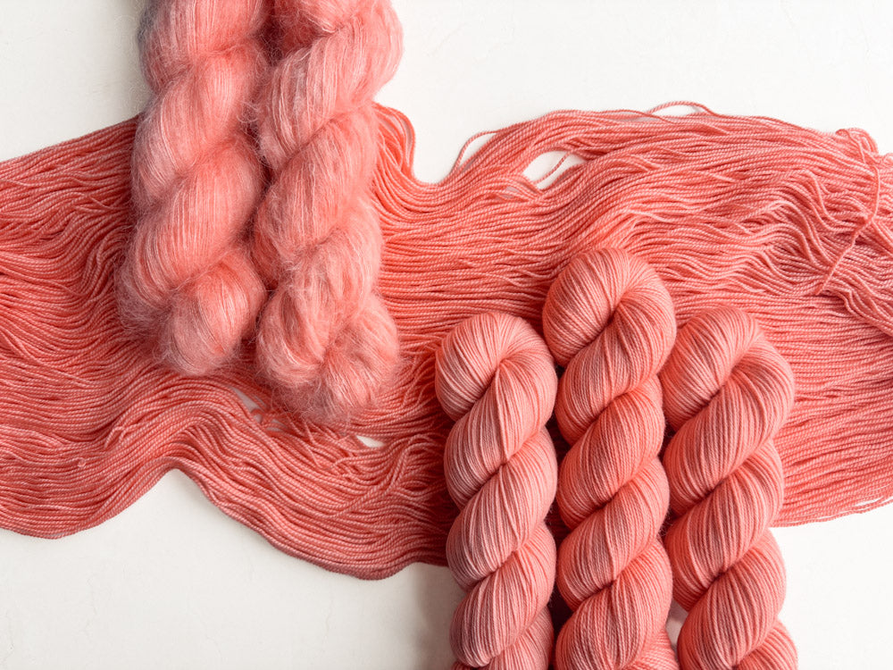 Colorway shown in the following order: Mohair, Suri, Phyllis Sock, Merino Sock, DK.