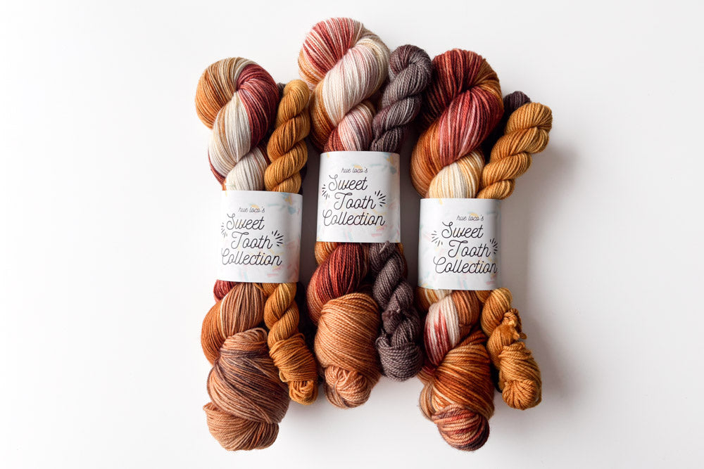 These sock sets are a unique spinoff of our monthly Sweet Tooth series showcasing a sweet treat for each month of the year! Featuring a tonal colorway specific to each dessert and two tonal minis, these sock sets are exclusive to Extravaganza 2025 so make sure to grab one while you can!
