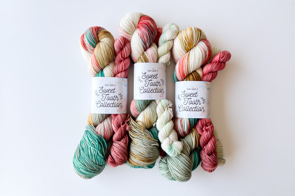 These sock sets are a unique spinoff of our monthly Sweet Tooth series showcasing a sweet treat for each month of the year! Featuring a tonal colorway specific to each dessert and two tonal minis, these sock sets are exclusive to Extravaganza 2025 so make sure to grab one while you can!