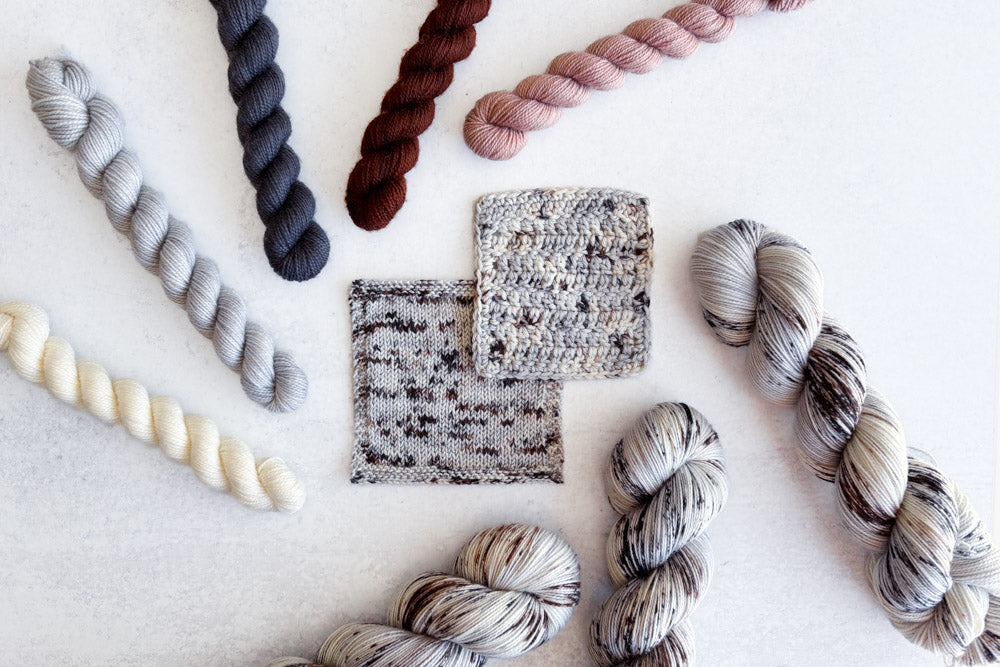 Knit swatch shown in Merino Sock, crochet swatch shown in Phyllis DK. Swatch will vary depending on base.