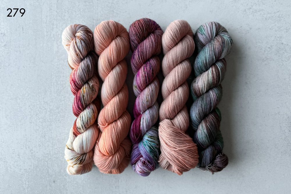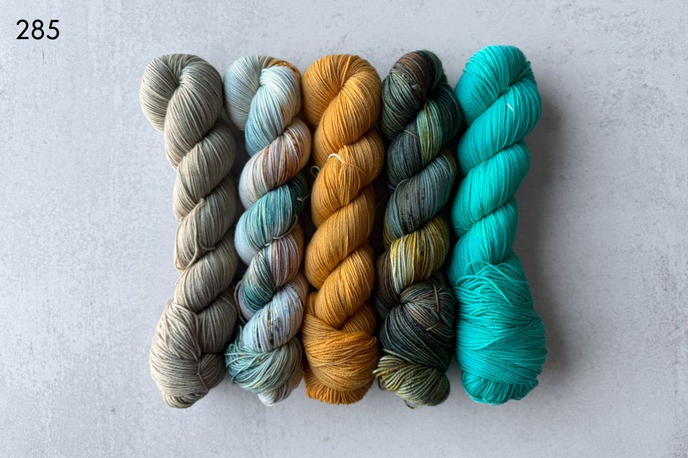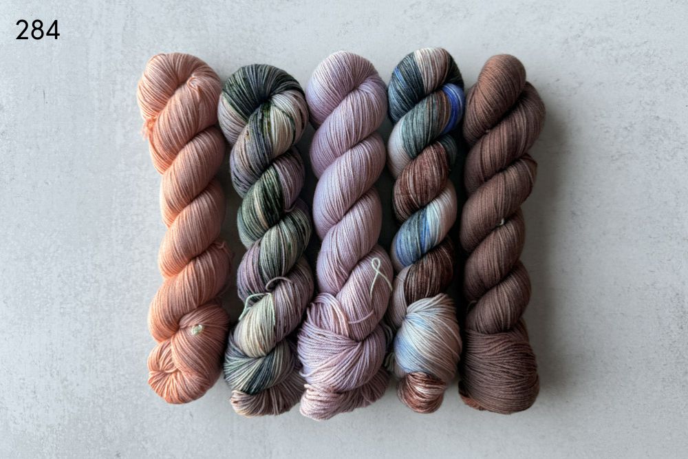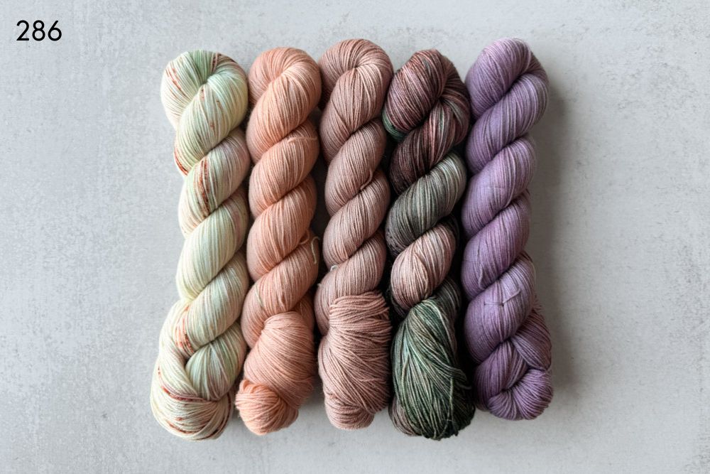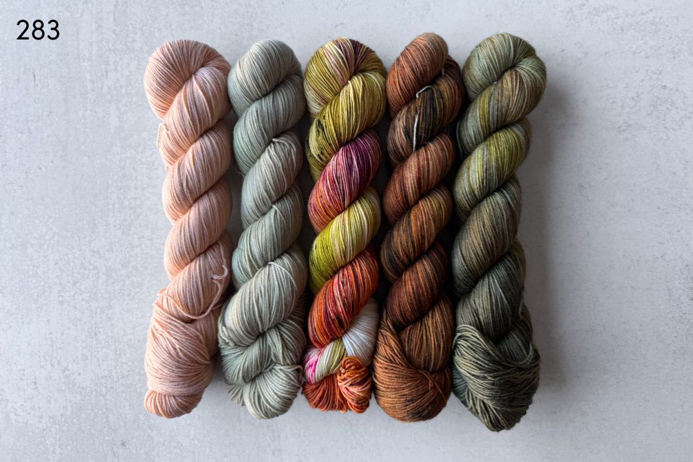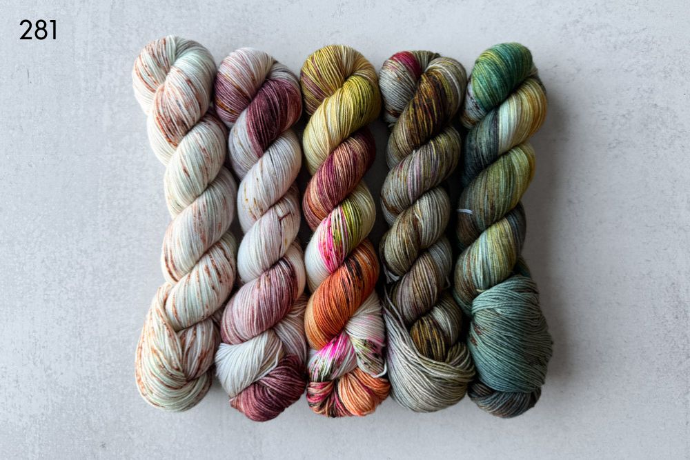 You'll receive (5) 100 gram skeins on Phyllis Sock