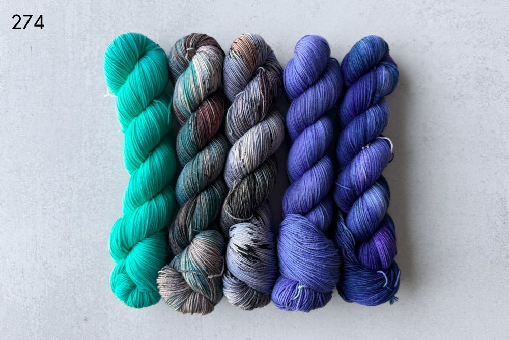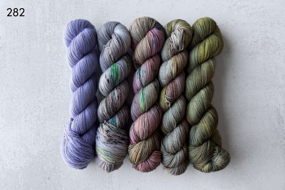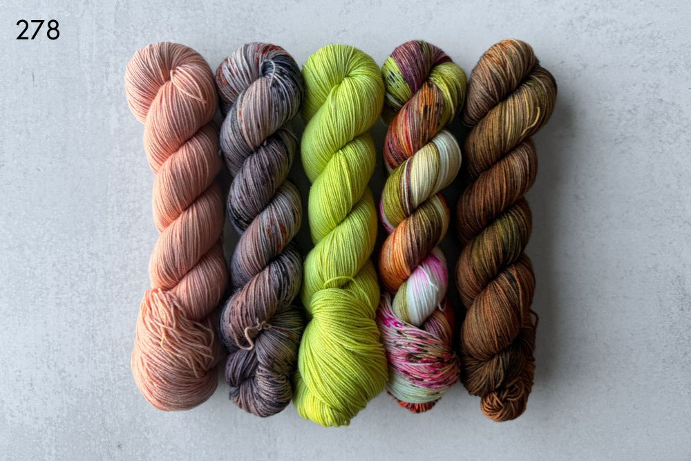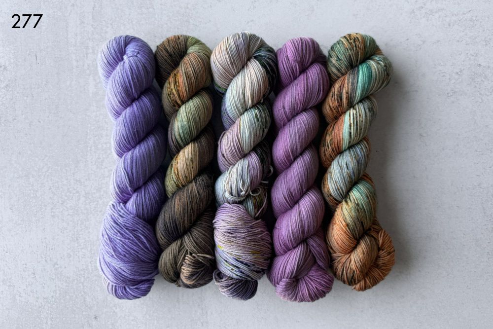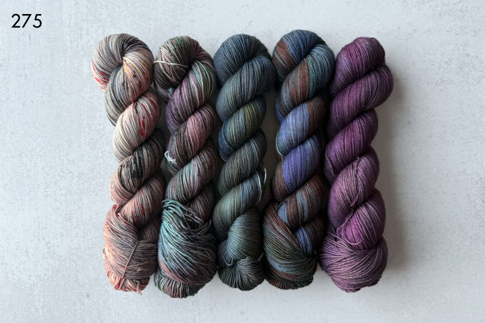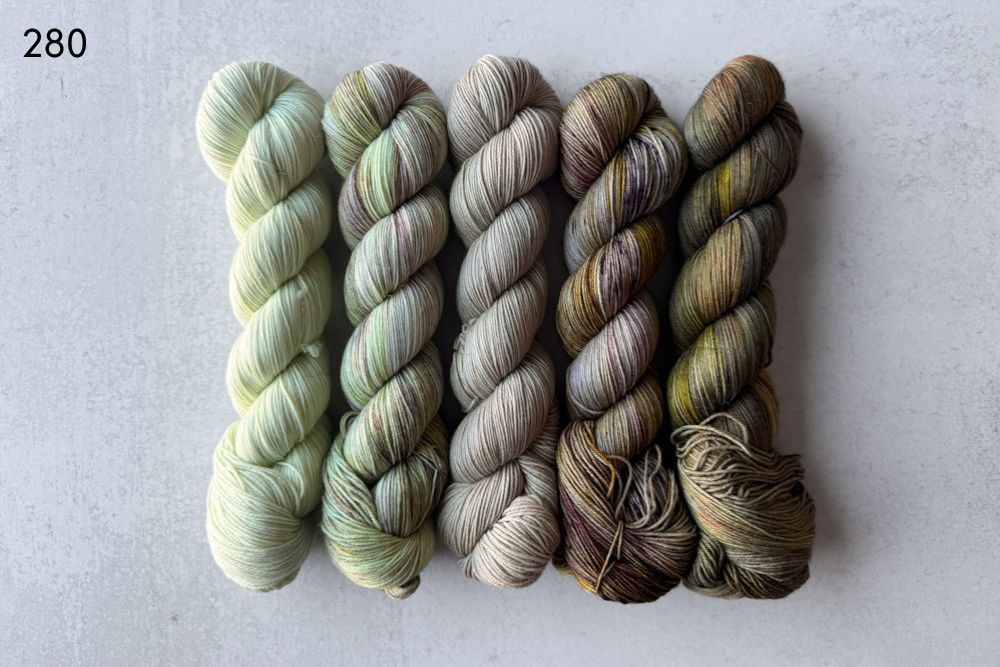 You'll receive (5) 100 gram skeins on Phyllis Sock