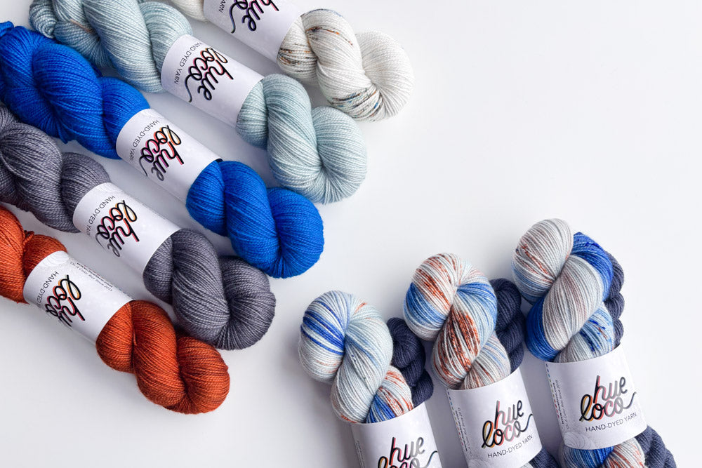 These one pot sock set batches come with a unique specked full skein paired with a complementary mini! Once they're gone, they're gone, so don't miss out!