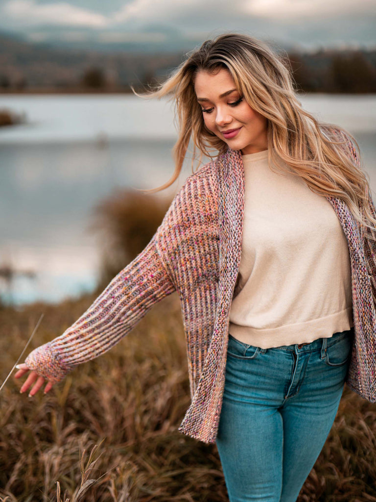 Make a luxurious Hearthside Cardigan of your very own with our Opalescent Set and the stunning new Hearthside Cardigan pattern from Wool & Pine!