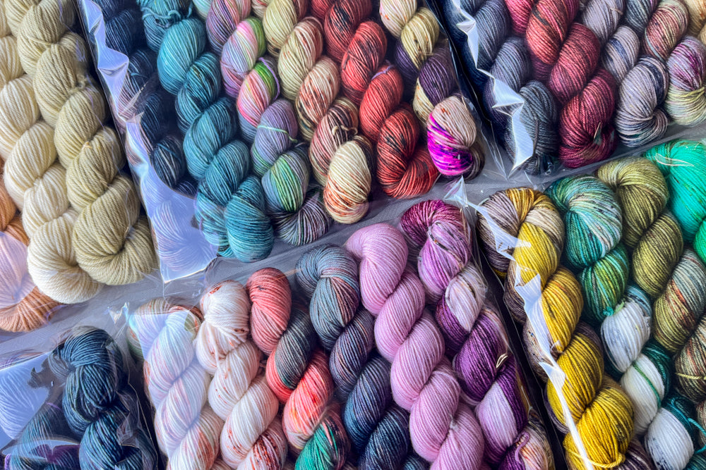 These bags are filled with overflow collection colorways, one pots and single run colorways! A mixture of mostly speckled skeins with a few being semisolids.