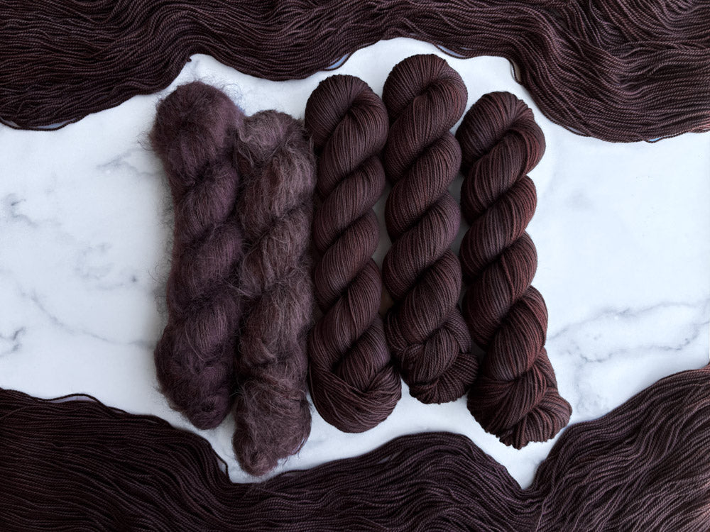 Onyx coordinates with our Vineyard, Mauve, Nectarine, Pumpkin, Ochre, Elm, Celadon, Sage, Cracked Pepper, and Dove in-stock semisolids.
