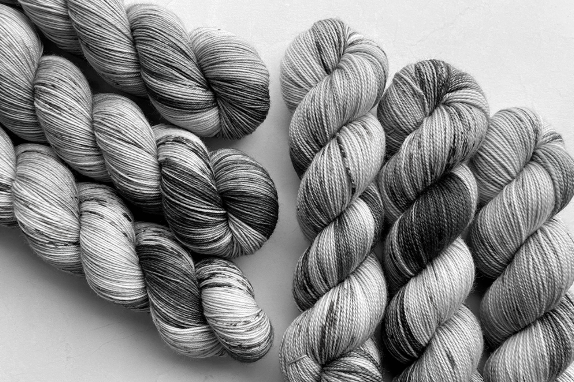 You'll find overflow collection colorways, one pots, oopsies, heathered, single run and overstock colorways in our Trios bags! Most of our mystery skeins are speckled with a few being tonal/semisolid.